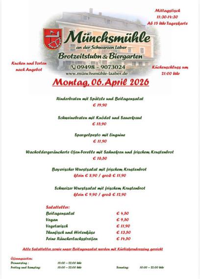 Machen Sie auf unseren Seiten einen Streifzug durch unseren Biergarten, die Stubn oder auch nur durch die herrliche Natur des Labertals.