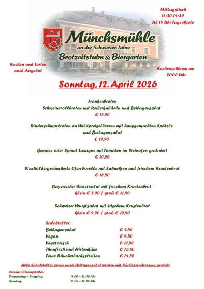 Ein leckerer Sonntag wartet auf euch, Plätze über Mittag nur noch im Biergarten verfügbar.